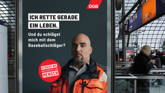Wer im Dienst der Öffentlichkeit arbeitet, wird immer häufiger Opfer von Gewalt. Unsere Initiative für den DGB stellt sich dem entgegen und macht klar: Vergiss nie, hier arbeitet ein Mensch!
