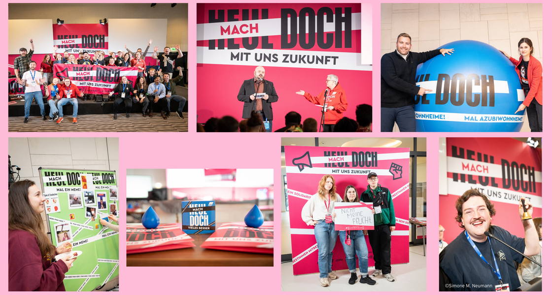 Auch zur Bundesjugendkonferenz 2025 kam unser Claim und Design wirkungsvoll zum Einsatz. Die alle vier Jahre stattfindende Konferenz vereint die bundesweiten Beschlussgremien der gewerkschaftlichen Jugendorganisationen. Für junge Gewerkschaftsmitglieder – insbesondere Auszubildende, Studierende und Berufseinsteiger*innen – ist sie ein wichtiges Forum, um Mitbestimmung zu leben, eigene Interessen einzubringen und Jugendpolitik aktiv mitzugestalten.