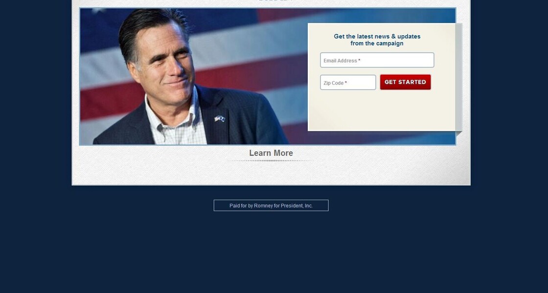 Vor der Startseite www.barackobama.com sind unterschiedliche Motive geschaltet, die Aussagen von Romney aufgreifen.